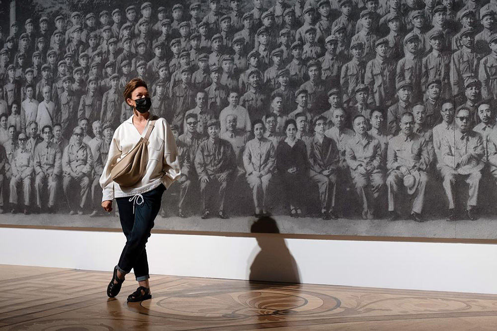 В музее представлены 30 произведений в разных техниках, часть из которых посвящена эрмитажной коллекции. Самая эффектная работа — 37,5-метровый групповой портрет членов китайской коммунистической партии, созданный из пепла.