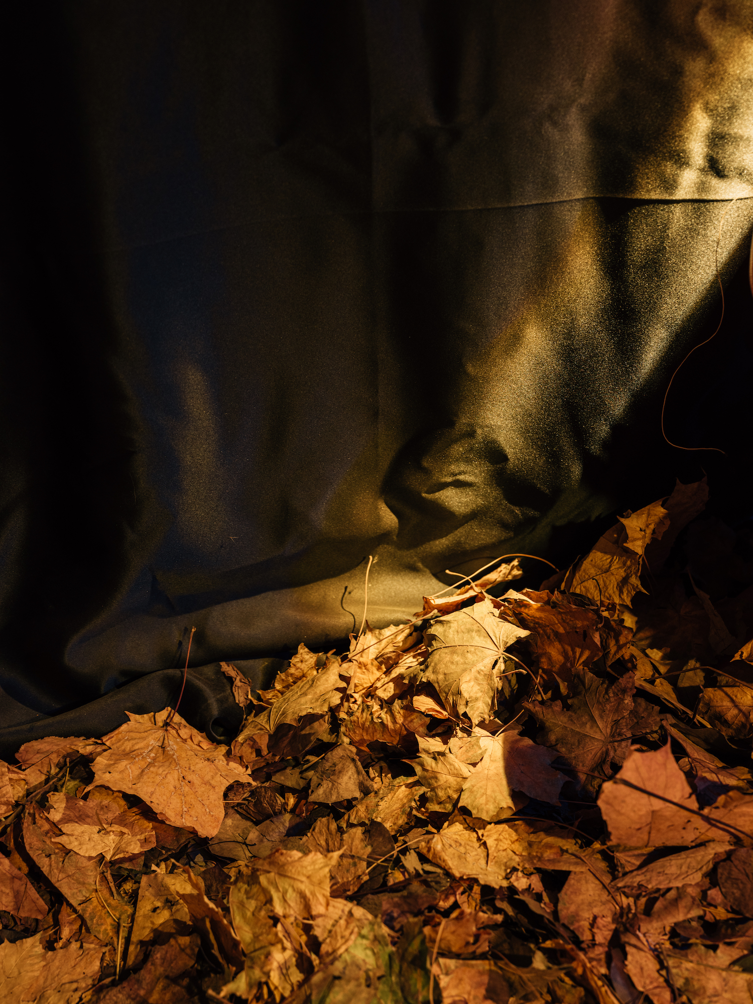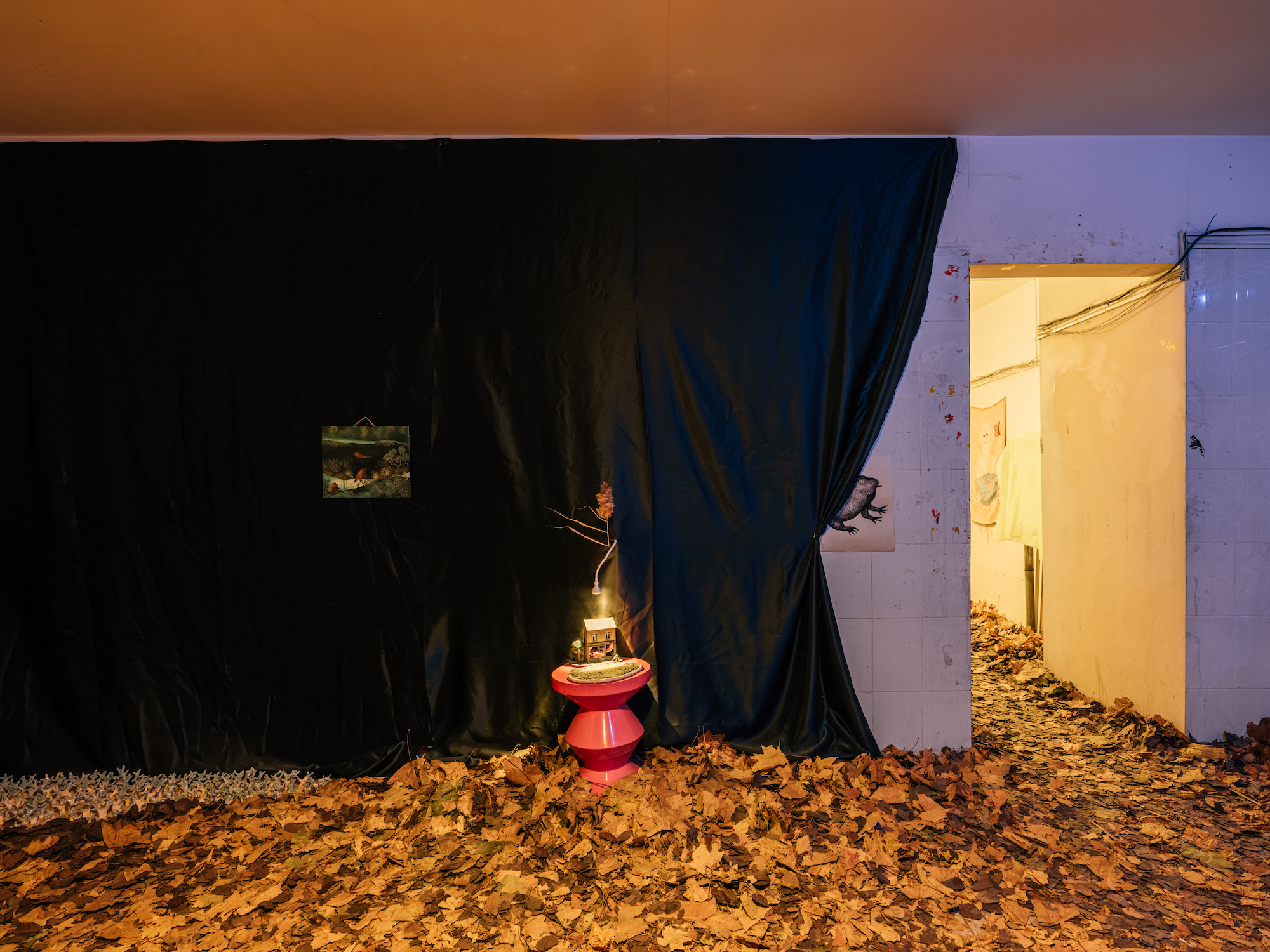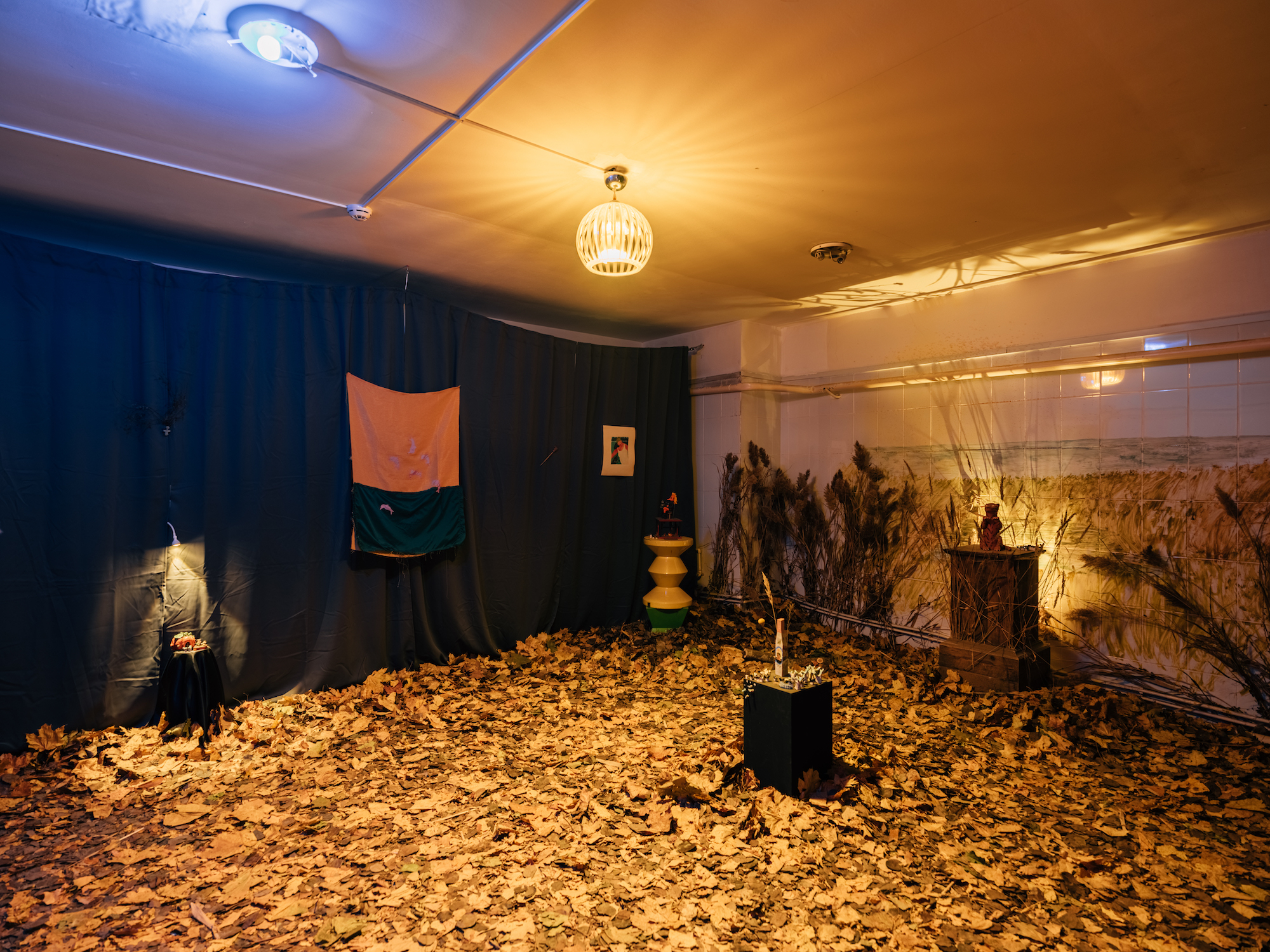 В служебном помещении «Лавки художника» на Невском проспекте, 8 проходит «Тайная выставка». Пол небольшого пространства застелен настоящей опавшей листвой — для этого понадобилось восемь мешков листьев. Стены декорированы тростником.
