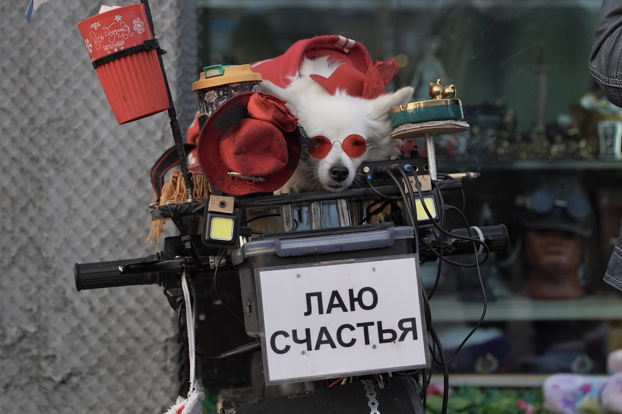 — Я знаю их уже 10 лет, — рассказывает женщина с листовками. — Белла без Вовы жить не может. Попросил Вова, чтобы я постояла со скутером и с Беллой, а он пошел воды купить — так она чуть с ума не сошла, не могла дождаться его. Вова за Беллу тоже горло перегрызет. Вова ее так кормит, это вообще! Идут они в столовую «Тарелка», а у Беллы там специальное место. Она кушает из своей тарелочки.