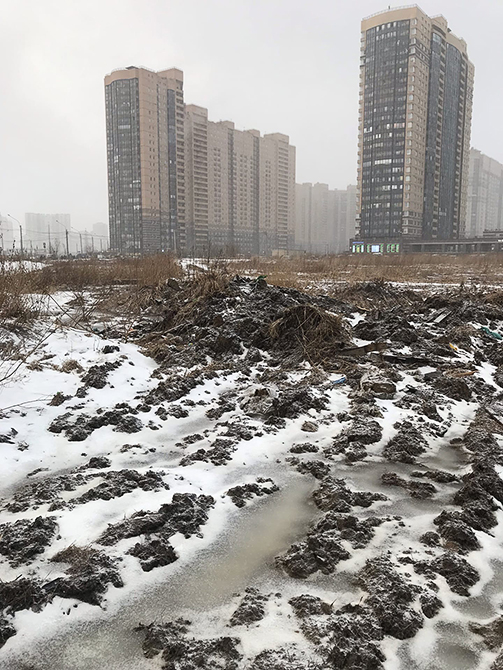 Опасаясь, что мусор размокнет и начнет пахнуть, жители Парнаса пожаловались в администрацию района. В апреле они получили ответ — теперь собственник должен убрать территорию.