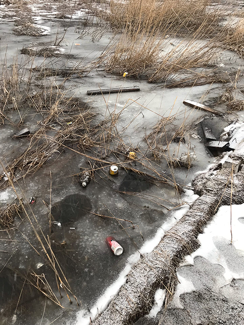 На Парнасе, на пересечении улиц Михаила Дудина и Федора Абрамова, находится большой незастроенный участок. Его площадь больше 18,5 тысячи квадратных метров. Несколько лет он был огорожен забором. Этой зимой ветер повредил забор, его убрали — и жители района увидели, что пустырь превратился в свалку: там скопились бутылки, битое стекло и пакеты с мусором.