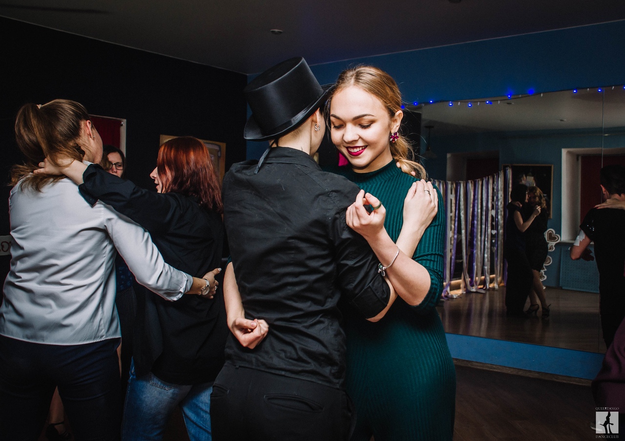 Первую вечеринку-практику я провела у себя на работе — у меня была студия видеомонтажа — с людьми, которые тоже увлекались квир-танго. Это хорошо зашло, я почувствовала заинтересованность. Людям тогда не хватало тематических вечеринок, веселой неформальной движухи, был запрос на сообщество. Поэтому возникла идея сделать именно клубную структуру.