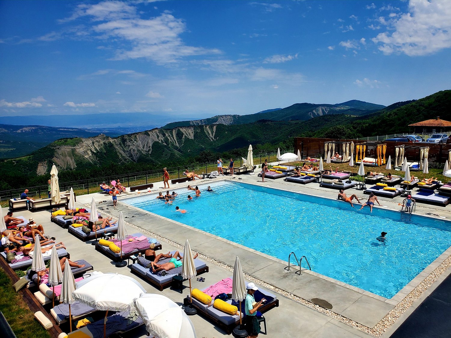 Загородный клуб с бассейном находится в 30 минутах езды от района Ваке. Здесь есть лаундж-бар, спа, а главное — вид на горы.