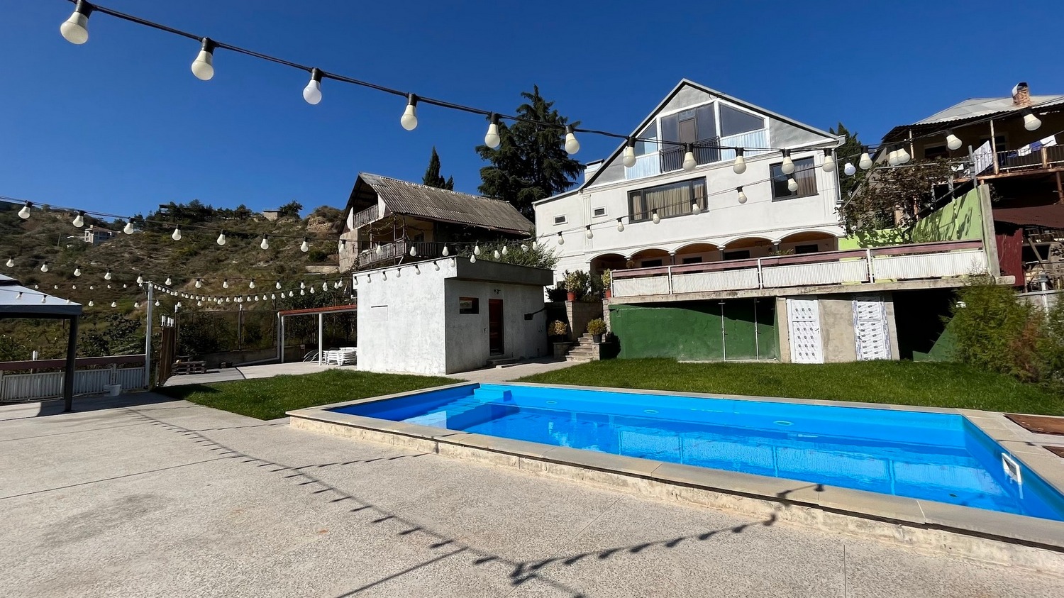 Комплекс из трех небольших бассейнов во дворе частного дома в районе Чугурети — всего в 10 минутах езды от центра города. Есть бар с напитками и закусками, много шезлонгов и гамаки.