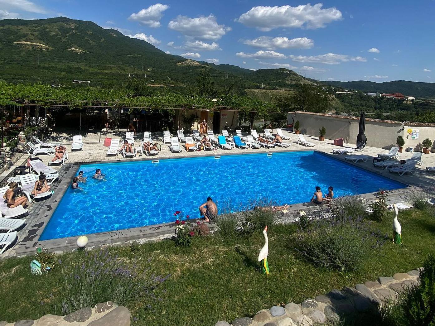 Бассейн находится в Мцхете — в 40 минутах езды от Тбилиси. Здесь можно отдохнуть на территории частного дома, в закрытом дворе с цветущим садом, маргаритой и лимонадами.
